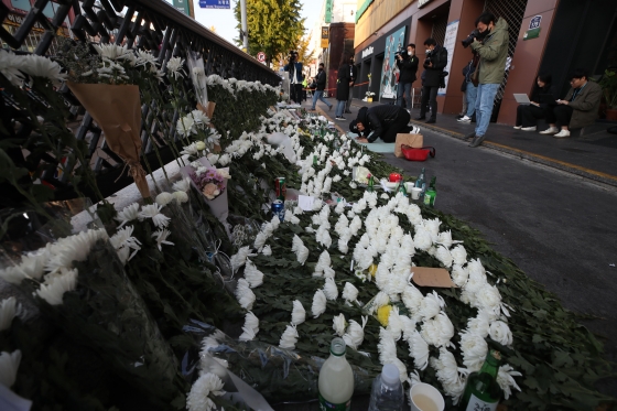 | ¡ã31ÀÏ ¿ÀÀü ¼¿ï ¿ë»ê±¸ ÀÌÅ¿ø ¾Ð»ç Âü»ç ÇöÀå ÀαÙÀÎ ÀÌÅ¿ø¿ª 1¹øÃⱸ ¾Õ Èñ»ýÀÚ Ãß¸ð°ø°£¿¡¼ ÇÑ ½Ã¹ÎÀÌ °íÀεéÀ» ¾ÖµµÇÏ´Â ÀýÀ» Çϰí ÀÖ´Ù. /»çÁø=´º½Ã½º |