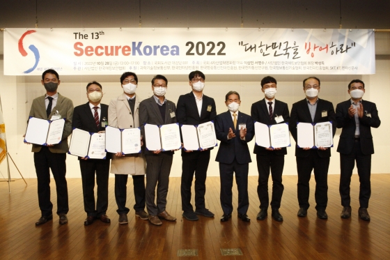 À̹ø ÄÁÆÛ·±½º¿¡¼´Â ÇØÅ·º¸¾È °ü·Ã À¯°øÀÚ ½Ã»óÀ¸·Î °úÇбâ¼úÁ¤º¸Åë½ÅºÎÀå°ü ǥâ¿¡ ±¤¿î´ëÇб³ IPP°øµ¿ÈƷü¾ÅÍ ±è¿ëÈ£ ±³¼ö, Çѱ¹ÀÎÅͳÝÁøÈï¿øÀå»ó¿¡ Çѱ¹¿øÀڷ¿¬±¸¿ø ¼ÕÁØ¿µ ½ÇÀå, Çѱ¹ÀüÀÚÅë½Å¿¬±¸¿øÀå»ó¿¡ ¼¿ï ¼´ë¹®°æÂû¼ Á¤¹Îȯ °æÀ§, SecureKorea ÓÞßÛ ±â¾÷ºÎ¹® ¢ß¿¡À̾ÆÀÌ³Ý ÃÖ¼º¼ö ´ëÇ¥, °ø°øºÎ¹® ¼¿ï µ¿ÀÛ°æÂû¼ ½ÅÃæ±Ù ÆÀÀå, °³Àκι®¿¡´Â ÄÉÀÌÆ¼ ±è¼®Áß Â÷Àå, ±³À°ºÎ¹® ¿ì¸®±ÝÀ¶±×·ì ¿ì¸®¿¡ÇÁ¾ÆÀÌ¿¡½º Á¤Á¾±Õ ÆÀÀåÀÌ °¢°¢ ¼ö»óÇß´Ù.