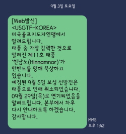 9¿ù 5ÀÏ ¿¹Á¤µÆ´ø Å×½ºÆ®°¡ ¿ª´ë±Þ ÅÂdz ¡®Èù³²³ë¡¯·Î ÀÎÇØ ¿¬±âµÆ´Ù. Å×½ºÆ® ÀÌÆ² ÀüÀÎ 3ÀÏ ¹ã ûõº®·Â°ú °°Àº ¹®ÀÚ¸¦ ¹Þ¾Ò´Ù.