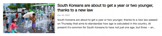 ¡®¸¸ ³ªÀÌ¡¯·ÎÀÇ ÅëÀÏÀÌ È®Á¤µÇÀÚ ¿Ü½Å¿¡¼µµ °ü½ÉÀ» º¸¿´´Ù. ¹Ì±¹ CNNÀº Áö³´Þ ÃÊ ¹Î¹ý¡¤ÇàÁ¤±âº»¹ý °³Á¤¾ÈÀÌ ±¹È¸¸¦ Åë°úÇÏÀÚ ÀÌ ¼Ò½ÄÀ» ÀüÇÏ¸ç ¿ì¸®³ª¶óÀÇ ³ªÀÌ ¹®È¸¦ ¼Ò°³Çß´Ù. CNNÀº °¡¼ö ½ÎÀ̸¦ ¿¹·Î µé¸ç ½ÎÀÌ´Â 1977³â 12¿ù 31ÀÏ»ýÀÌ¾î¼ ¸¸À¸·Î´Â 44¼¼(2022³â ÇöÀç)Áö¸¸, ¿¬ ³ªÀ̷δ 45¼¼, ¼¼´Â ³ªÀ̷δ 46¼¼°¡ µÈ´Ù°í ¼³¸íÇß´Ù. ¶Ç, ž¸é¼ 1»ìÀÌ µÇ´Â ¡®¼¼´Â ³ªÀÌ¡¯¸¦ ¡®Çѱ¹½Ä ³ªÀÌ¡¯¶ó°í ¼Ò°³ÇÏ¸ç ¿©±â¿¡´Â Áß±¹ÀÇ ¿µÇâÀ» ¹ÞÀº Ãø¸éÀÌ ÀÖ´Ù°í ÀüÇß´Ù. ±×·¯¸é¼ ¿ì¸®³ª¶ó°¡ ¿À·£ ³í¶õ ³¡¿¡ ¸¸ ³ªÀÌ·Î ÅëÀÏÇÏ¸é¼ ¼¼°è ´Ù¸¥ ³ª¶óµé°ú µ¿ÀÏÇÑ ³ªÀÌ Ã¼°è°¡ Á¤ÂøÇÏ°Ô µÆ´Ù°í Æò°¡Çß´Ù.
