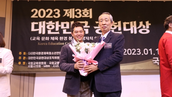 Çѱ¹È¯°æÃ¼À°Ã»¼Ò³â¿¬¸Í(ÀÌ»çÀå À¯¹üÁø)°ú ±¹È¸ÀÇ¿ø ±è¼±±³ ÀÇ¿øÀÌ °øµ¿ ÁÖÃÖÇÑ ¡¸2023 ´ëÇѹα¹ °øÇå´ë»ó¡¹Àº ±³À°¡¤¹®È¡¤Ã¼À°¡¤È¯°æ¡¤ÀÇÁ¤¡¤Áö¹æÀÚÄ¡¡¤ºÀ»ç µî 7°³ ºÐ¾ß¿¡¼ Å©°Ô °øÇåÇÑ Àι° ¹× ±â°üÀÇ ³ë·Â°ú Çå½ÅÀ» ±â¸®°í °Ý·ÁÇÏ´Â ÀÚ¸®´Ù. ¿ÃÇØ·Î 3ȸ¸¦ ¸ÂÀÌÇÑ ½Ã»ó½ÄÀº Äڷγª19 ÀÌÈÄ Ã¹ ´ë¸éÀ¸·Î ÁøÇàµÅ Àǹ̸¦ ´õÇß´Ù.