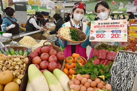Çϳª·Î¸¶Æ®¿¡¼´Â ³ôÀº ¹°°¡¿¡µµ ºÒ±¸ÇÏ°í ¼³ Â÷·Ê»ó À½½Ä Áغñ¸¦ À§ÇØ ¸ÅÀå¿¡ ¹æ¹®ÇϽô °í°´´ÔÀ» À§ÇØ »îÀº °í»ç¸®, ±ñµµ¶óÁö µî ±¹³»»ê ³ª¹° ¹× »ç°ú¡¤¹è µî ÁÖ¿ä Á¦¼ö¿ëǰÀ» »ì ¸À³ª´Â °¡°ÝÀ¸·Î ÃÖ´ë 60% ÇÒÀÎ ÆÇ¸ÅÇÑ´Ù.