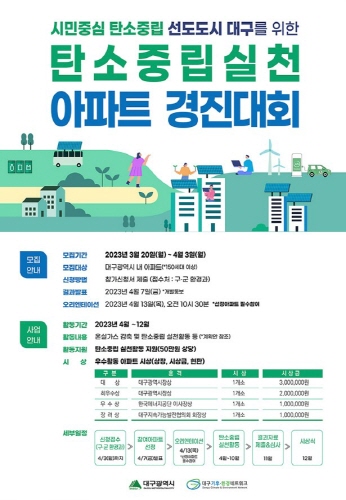 ½Ã´Â 20ÀϺÎÅÍ ´ÙÀ½´Þ 3ÀϱîÁö ¡®Åº¼ÒÁ߸³ ½Çõ ¾ÆÆÄÆ® °æÁø´ëȸ'¿¡ Âü¿©ÇÒ ¾ÆÆÄÆ® ´ÜÁö¸¦ ¸ðÁýÇÑ´Ù. ¿ÃÇØ·Î 9ȸ°ÀÎ ¡®Åº¼ÒÁ߸³ ½Çõ ¾ÆÆÄÆ® °æÁø´ëȸ¡¯´Â ¿¡³ÊÁö Àý¾à, ¿Â½Ç°¡½º °¨Ãà, ź¼ÒÁ߸³ ½Çõ Ȱµ¿ µîÀ» Æò°¡, ¿ì¼ö ¾ÆÆÄÆ®¸¦ ¼±Á¤¡¤½Ã»óÇÏ´Â ´ëȸ´Ù.