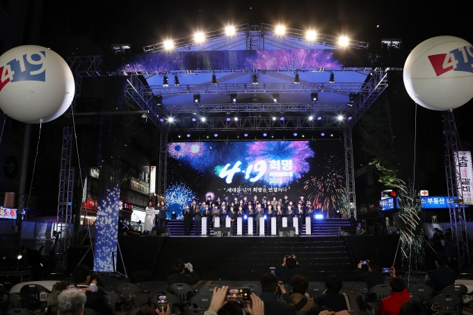 4¡¤19Çõ¸í±¹¹Î¹®ÈÁ¦¿¡ ¹«°Å¿î ÁÖÁ¦ÀÇ Çà»ç¸¸ ÀÖ´Â °ÍÀº ¾Æ´Ï´Ù. À½¾Ç °ø¿¬Àº ¹°·Ð ¸¶ÀÓ, °ü°´Âü¿©Çü °ø¿¬±îÁö ÁøÇàµÈ´Ù. ÃàÁ¦ °ü°èÀÚ´Â "¸¹Àº ½Ã¹ÎÀÌ ½±°í ÆíÇÏ°Ô ÃàÁ¦¿¡ Âü¿©Çϰí 4¡¤19Çõ¸í¿¡ ´ëÇØ ¶°¿Ã¸± ÀÖµµ·Ï Çϱâ À§ÇØ ¹®È°ø¿¬À» ±âȹÇß´Ù"°í ¼³¸íÇß´Ù.
