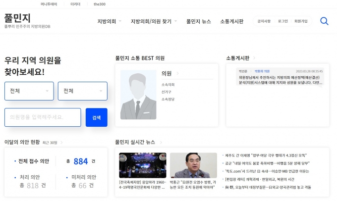 ±¹³» ù Áö¹æÀÇȸ Á¾ÇÕ Á¤º¸»çÀÌÆ® Ç®¹ÎÁöDB(Ç®»Ñ¸®¹ÎÁÖÁÖÀÇ Áö¹æÀÇȸ µ¥ÀÌÅͺ£À̽º¡¤https://council.mt.co.kr/)°¡ 3ÀÏ ¿ÀÇÂÇß´Ù. Çѱ¹¾ð·ÐÀç´ÜÀÇ Á¦ÀÛºñ Áö¿øÀ» ¹Þ¾Æ ¸Ó´ÏÅõµ¥ÀÌ(the300 ¡¤ the Leader)°¡ °³¹ßÇÑ Ç®¹ÎÁöDB´Â 243°÷ Áö¹æÀÇȸ Àüü Á¤º¸¿Í ¼Ò¼Ó ÀÇ¿øµéÀÇ ÀÇÁ¤È°µ¿À» ÇÑ´«¿¡ È®ÀÎÇÒ ¼ö ÀÖ´Â '¾ç¹æÇâ ¼ÒÅë»çÀÌÆ®'ÀÌ´Ù.