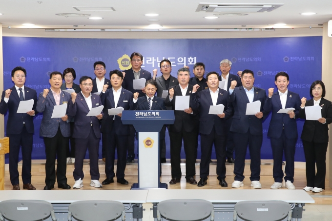 | ¡ãÇѱ¹¿¡³ÊÁö°ø´ë Ã⿬±Ý Àç°ËÅä ±Ôź ¼º¸íÀ» ¹ßÇ¥ÇÏ´Â Àü³²µµÀÇȸ ÀÇ¿øµé/»çÁø=Àü³²µµÀÇȸ Á¦°ø |