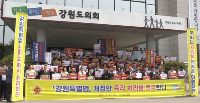 | ¡ã°¿øµµÀÇȸ ÀÇ¿øµéÀÌ Æ¯º°ÀÚÄ¡µµ¹ý ±¹È¸ Åë°ú Ã˱¸ °áÀǹ®À» ¹ßÇ¥Çß´Ù./»çÁø=°¿øµµÀÇȸ Á¦°ø |