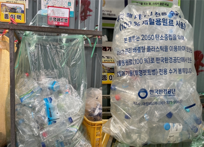 ÇöÀç °øµ¿ÁÖÅÿ¡¼ Åõ¸í PETº´À» Æ÷ÇÔÇÑ ºÐ¸®¹èÃâ ÀçȰ¿ëǰÀ» ´ã´Â ¼ö°Å¿ë ºÀÅõ´Â ÇÃ¶ó½ºÆ½ ½ÅÀç¿ø·á¿Í °íǰÁú ½ºÅ©·¦À» È¥ÇÕÇÏ¿© ¸¸µç ¿ø·á·Î ºÀÅõ¸¦ Á¦ÀÛ¡¤»ç¿ëÇϰí ÀÖ¾î Æó±â¹° 󸮿¡ °í±Þ ¿ø·á°¡ »ç¿ëµÇ´Â ¸ð¼øÀÌ ÀÖ´Ù.