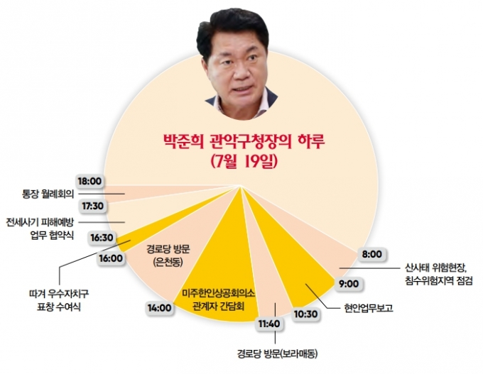 ¹ÚÁØÈñ ¼¿ï °ü¾Ç±¸Ã»ÀåÀº ÁֹεéÀÇ ÇູÁö¼ö¸¦ ²ø¾î¿Ã¸®±â À§ÇÑ ¡®ÀÌûµæ½É(ì¤ôéÔðãý)¡¯ ±¸Á¤À» °Á¶ÇÑ´Ù. ¡®µè´Â °ÍÀ¸·Î ¸¶À½À» ¾ò´Â´Ù¡¯´Â ÀÌ ¹®±¸¸¦ »õ±â¸ç ¹Î»ý ÇöÀå¿¡ ÃÖ´ëÇÑ ´Ù°¡¼°Ú´Ù´Â °ÍÀÌ´Ù. ¸¸³ª°í µè°í »ý°¢ÇÏ´À¶ó ´«ÄÚ ¶ã »õ ¾øÀÌ ¹Ù»Û ¹Ú ±¸Ã»ÀåÀÇ ÇϷ縦 µû¶ó°¡ ºÃ´Ù.