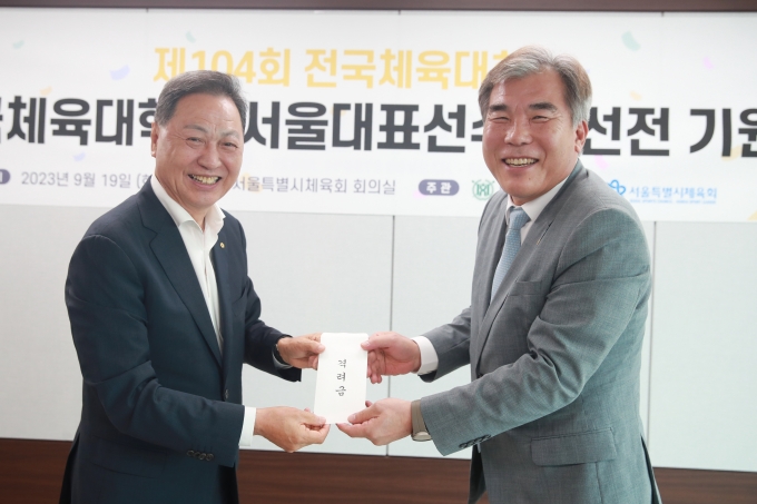 °Å¼± ¼¿ïƯº°½ÃüÀ°È¸ÀåÀº 9¿ù 19ÀÏ ¼¿ïƯº°½ÃüÀ°È¸¿¡¼ ¹®¿øÀç Çѱ¹Ã¼À°´ëÇб³ ÃÑÀåÀ» ¸¸³ª °Ý·Á±ÝÀ» Àü´ÞÇϰí Á¦104ȸ Àü±¹Ã¼À°´ëȸ¿¡ ¼¿ï½Ã ´ëÇ¥·Î Âü°¡ÇÏ´Â Çѱ¹Ã¼À°´ëÇб³ ¼±¼ö´ÜÀÇ ¼±ÀüÀ» ´çºÎÇß´Ù.