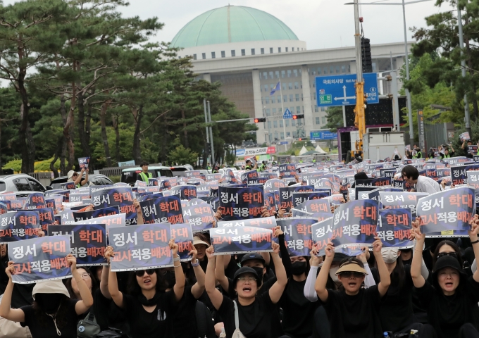 | ¡ãÀü±¹¿¡¼ ¸ðÀÎ ±³»çµéÀÌ 9¿ù 16ÀÏ ¿ÀÈÄ ¼¿ï ¿µµîÆ÷±¸ ÀÇ»ç´ç´ë·Î¿¡¼ ¡®9.16 °ø±³À° ȸº¹À» À§ÇÑ ±¹È¸ ÀÔ¹ý Ã˱¸ Áýȸ¡¯¸¦ Çϰí ÀÖ´Ù./»çÁø=´º½Ã½º |
