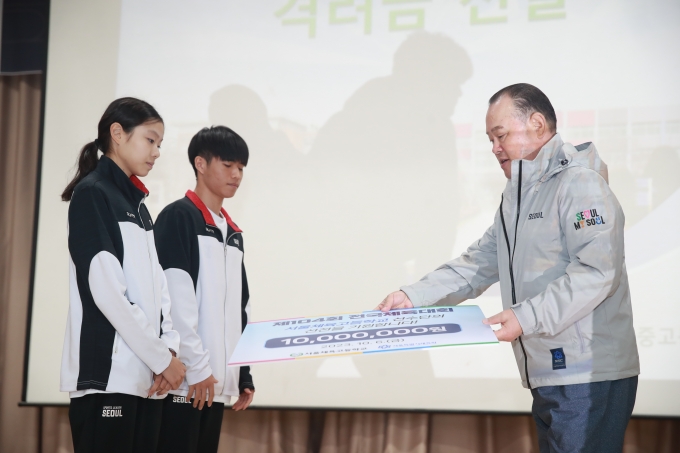 ±è¼º¹ü ¼¿ïƯº°½ÃüÀ°È¸ ºÎȸÀåÀº ¡°¼¿ï½Ã¸¦ ´ëÇ¥ÇØ Àü±¹Ã¼À°´ëȸ¿¡ ÃâÀüÇÏ´Â ¼¿ïüÀ°°íµîÇб³ ¼±¼ö¿Í ÁöµµÀÚ¿¡°Ô °¨»çÀÇ ¶æÀ» ÀüÇϸç, Àü¹®Ã¼À° ¹ßÀüÀ» À§ÇØ ½Ã¼³ È®Ãæ°ú °æ±â·Â Çâ»óÀ» À§ÇÑ Áö¿øÀ» ¾Æ³¢Áö ¾Ê°Ú´Ù¡±¶ó¸ç °Ý·ÁÀÇ ¸»À» ÀüÇß´Ù.