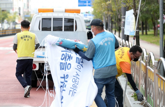 | ¡ã±¤ÁÖ ºÏ±¸Ã» ±¤°í¹°°ü¸®ÆÀ Á÷¿øµéÀÌ 11ÀÏ ºÏ±¸ ½Å¿ëµ¿ ÀÏ´ë¿¡¼ ¹«ºÐº°ÇÏ°Ô °É·ÁÀÖ´Â ¾ÆÆÄÆ® ºÐ¾ç ±¤°í ºÒ¹ý Çö¼ö¸·À» ¼ö°ÅÇϰí ÀÖ´Ù./»çÁøÁ¦°ø= ±¤ÁÖ ºÏ±¸Ã» |