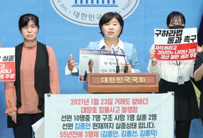 ¼±¿øÀ̾ú´ø ±èÁ¾¾È¾¾´Â 2³â Àü ¼±¹Ú ħ¸ô»ç°í·Î ½ÇÁ¾µÇ¾ú°í, ¾ÆÁ÷ ½Ãüµµ ãÁö ¸øÇÑ »óȲÀÌ´Ù. ±×·±µ¥ ±èÁ¾¾È¾¾¸¦ 2»ì ¶§ ¹ö¸®°í °£ »ý¸ð°¡ 54³â ¸¸¿¡ ³ªÅ¸³ª, ±èÁ¾¾È¾¾ÀÇ Àç»ê°ú À¯Á·±Þ¿© µî º¸Çè±ÝÀ» °¡Áö°í °¡·Á ÇØ ÇöÀç ¼Ò¼Û Áß¿¡ ÀÖ´Ù.