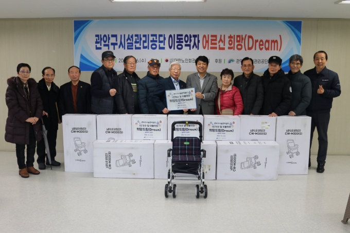 À̹ø ±âºÎ ´ë»óÀº °ø´ÜÀÇ ¾÷¹«Çù¾à±â°üÀÎ ´ëÇѳëÀÎȸ °ü¾Ç±¸Áöȸ ¹× °ü¾Ç±¸Àå¾ÖÀδÜü¿¬ÇÕȸÀÇ ÃßõÀ¸·Î ¼±Á¤ÇÏ¿´À¸¸ç, °ø´ÜÀº À̵¿¾àÀÚ ¾î¸£½ÅÀÇ À̵¿ ÆíÀǸ¦ À§ÇØ °ü¾Ç±¸ °æ·Î´ç 10°÷¿¡ ½Ç¹öÄ«(º¸Ç൵¿ò±â±â) 10´ë¿Í Àå¾ÖÀÎ 1ÀÎ °¡±¸ ¹× ´Ù°¡±¸ ÃÑ 4°¡Á¤¿¡ ¿Â¼ö¸ÅÆ®, À̺Ò, ÇÞ¹Ý 4¼¼Æ®¸¦ Àü´ÞÇß´Ù.