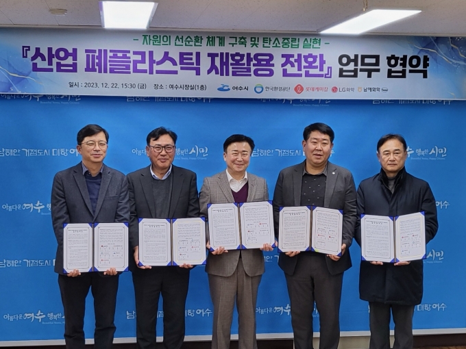 Çѱ¹È¯°æ°ø´Ü ±¤ÁÖÀü³²Á¦ÁÖȯ°æº»ºÎ(º»ºÎÀå ¹ÚÁ¾È£)´Â ¿©¼ö½Ã(½ÃÀå Á¤±â¸í), ·Ôµ¥ÄɹÌÄ® ÷´Ü¼ÒÀç ¿©¼ö°øÀå(°øÀåÀå ±è´ëÁß), LGÈÇÐ ¿©¼ö°øÀå(ÁÖÀçÀÓ¿ø ÀÌÇö±Ô), ³²ÇØÈÇÐ ¿©¼ö°øÀå(°øÀåÀå ±â½ÂÈ£)¿Í 12. 22.(±Ý) ¿©¼ö½Ãû ½ÃÀå½Ç¿¡¼ »ê¾÷ ÆóÇÃ¶ó½ºÆ½ ÀçȰ¿ëÀüȯÀ» À§ÇÑ ¾÷¹«Çù¾àÀ» ü°áÇß´Ù°í ¹àÇû´Ù.