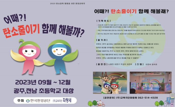 ¶ÇÇÑ, ¼öµµ±Ç ¹× µµ½ÃÁö¿ª°úÀÇ È¯°æ±³À° °ÝÂ÷ ÇØ¼Ò¸¦ À§ÇØ ±¤ÁÖ¿Í Àü³² µµ¼Áö¿ª µî 17°³ ÃʵîÇб³¸¦ ´ë»óÀ¸·Î 10¿ùºÎÅÍ 12¿ù±îÁö ȯ°æ±³À° ÀÎÇü±Ø °ø¿¬À» ÅëÇØ 3,418¸íÀÇ Çлýµé·ÎºÎÅÍ Å« È£ÀÀÀ» ¾òÀº ¹Ù ÀÖ´Ù.