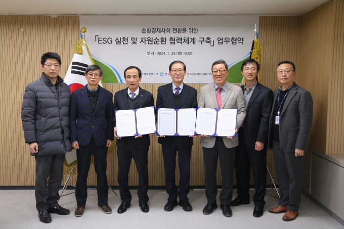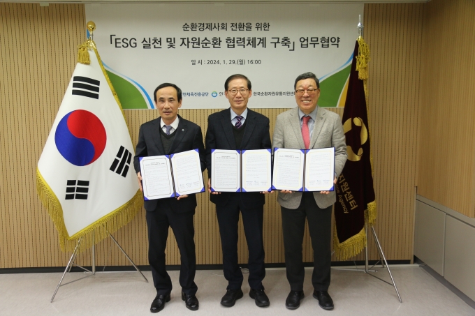 | ¡ã(¿ÞÂʺÎÅÍ)Á¤Àç¿õ ÀÚ¿ø¼øÈ¯ÀÌ»ç(Çѱ¹È¯°æ°ø´Ü), Á¶ÇöÀç ÀÌ»çÀå(±¹¹ÎüÀ°ÁøÈï°ø´Ü), À̸íȯ ÀÌ»çÀå(Çѱ¹¼øÈ¯ÀÚ¿øÀ¯ÅëÁö¿ø¼¾ÅÍ)ÀÌ ¾÷¹«Çù¾à½Ä ±â³ä ÃÔ¿µÀ» Çϰí ÀÖ´Ù<»çÁøÁ¦°ø=Çѱ¹È¯°æ°ø´Ü>. |