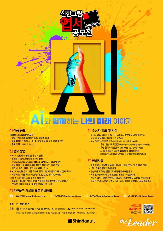 ½ÅÇÑȱ¸ È«º¸½Ç °ü°èÀÚ´Â À̹ø °ø¸ðÀü °ø½Ä ÁÖÁ¦¿¡ ´ëÇØ ¡°AI ±â¼úÀÇ ¹ß´Þ·Î °£´ÜÇÑ ¹®Àå Çϳª·Î ±×¸²ÀÌ ¿Ï¼ºµÇ´Â Áö±Ý, ½ÅÇÑȱ¸´Â ´ëÇѹα¹À» ´ëÇ¥ÇÏ´Â Àü¹®°¡ ¹Ì¼úÀç·á Á¦Á¶±â¾÷À¸·Î½á AI ±â¼ú ¹ß´Þ¿¡ ´ëÇÑ Âù¹Ýº¸´Ù´Â ÈÇÕ°ú À¶ÇÕÀ̶ó´Â °üÁ¡À¸·Î Á¢±ÙÇß´Ù¡±¸ç ¡°½ÅÇѱ׸²¿±¼°ø¸ðÀüÀ» ÅëÇØ ¹Ì·¡ÀÇ ¿¹¼ú°¡µé°ú AI¿¡ ´ëÇÑ ÀÚÀ¯·Ó°í ´Ù¾çÇÑ »ý°¢À» ¿±¼ ±×¸²À¸·Î Ç¥ÇöÇÏ°í ¼ÒÅëÇØ º¸°íÀÚ ÇÑ´Ù¡±°í ¼³¸íÇß´Ù.