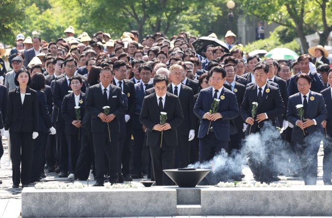| ¡ã±èµ¿¿¬ °æ±âµµÁö»ç°¡ 23ÀÏ ¿ÀÈÄ °æ³² ±èÇØ ºÀÇϸ¶À»¿¡¼ ¿¸° °í(ͺ) ³ë¹«Çö Àü ´ëÅë·É 15ÁÖ±â Ãßµµ½Ä¿¡¼ ³ë Àü ´ëÅë·ÉÀÇ ¹¦¿ª¿¡ ÇåÈÇϰí ÀÖ´Ù./»çÁøÁ¦°ø=°æ±âµµÃ» |