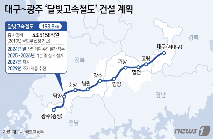 ´ë±¸½Ã¿Í ±¤Áֽð¡ ÇÕ½ÉÇØ Á¦Á¤À» ÀÌ·ï³½ ´ÞºûöµµÆ¯º°¹ýµµ ÀÖ´Ù. ÀÌ ¹ý¾ÈÀº ¿µ¡¤È£³² Áö¿ª ÈÇÕ°ú »ó»ýÀ» À§ÇØ ±¤ÁÖ ¼ÛÁ¤¿ªÀ» Ãâ¹ßÇØ Àü³², ÀüºÏ, °æ³², °æºÏÀ» °ÅÃÄ ¼´ë±¸¿ª±îÁö À̾îÁö´Â °í¼Óöµµ¸¦ °Ç¼³ÇÑ´Ù´Â ³»¿ëÀ» ´ã¾Ò´Ù. ½Å¼ÓÇÑ °Ç¼³À» À§ÇØ ¿¹ºñŸ´ç¼ºÁ¶»ç¸¦ ¸éÁ¦ÇÏ°í ±¹Åä±³ÅëºÎ »êÇÏ¿¡ ´Þºû°í¼Óöµµ°Ç¼³ÃßÁø´ÜÀ» ½Å¼³ÇÏ´Â °ÍÀÌ ÇÙ½ÉÀÌ´Ù.