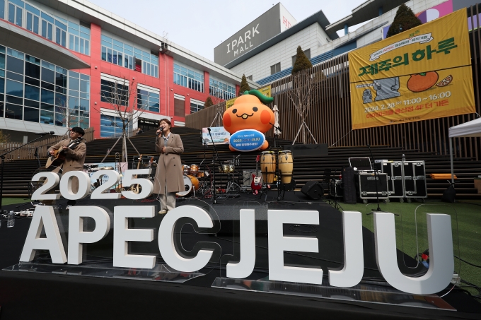 | ¡ã2¿ù 28ÀÏ ¿ÀÀü ¼¿ï ¿ë»ê±¸ ¾ÆÀÌÆÄÅ©¸ô¿¡¼ ¿¸° 'APEC Á¦ÁÖ À¯Ä¡ ±â¿ø Á¦ÁÖÀÇ ÇÏ·ç' Çà»ç¿¡¼ Á¦ÁÖ Ãâ½Å °¡¼öµéÀÌ °ø¿¬À» ¼±º¸À̰í ÀÖ´Ù. /»çÁø=´º½Ã½º |