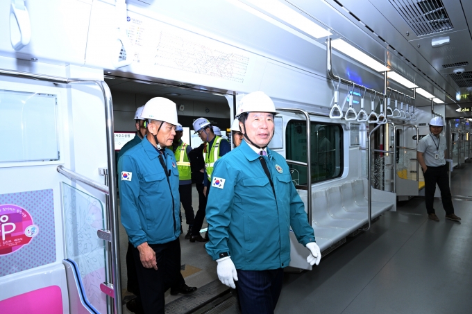 | ¡ã¹é°æÇö °æ±â ±¸¸®½ÃÀåÀÌ ÁöÇÏö 8È£¼± ¿¬Àå ¿µ¾÷ ½Ã¿îÀü ÇöÀåÀ» »ìÇǰí ÀÖ´Ù./»çÁøÁ¦°ø=±¸¸®½Ãû |