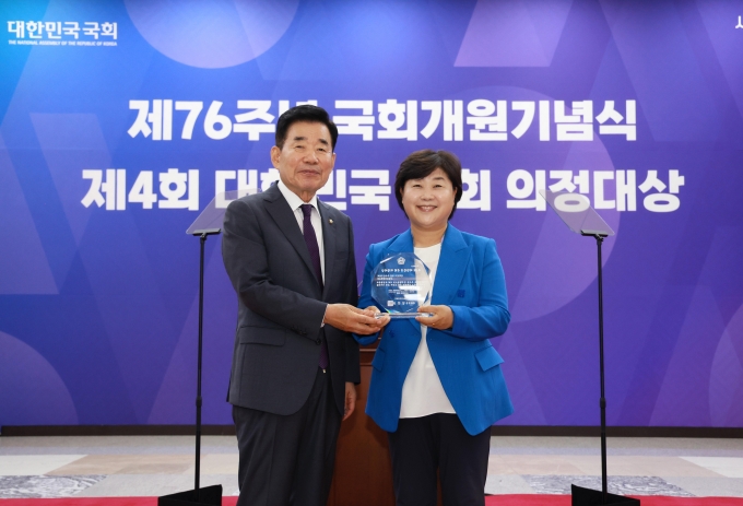 ¼¿µ±³ ±¹È¸ÀÇ¿ø(´õºÒ¾î¹ÎÁÖ´ç, ¼¿ï Áß¶û±¸°©)ÀÌ Áö³ 5¿ù 28ÀÏ(È)¿¡ ±¹È¸ º»Ã»¿¡¼ °³Ãֵȡ®Á¦76Áֳ⠱¹È¸ °³¿ø ±â³ä½Ä ¹× Á¦4ȸ ´ëÇѹα¹ ±¹È¸ ÀÇÁ¤´ë»ó¡¯¿¡¼ ¿ì¼ö ¿¬±¸´Üü ´ë»óÀ» ¼ö»óÇß´Ù.