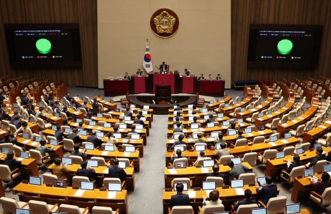 | ¡ã±¹È¸ º»È¸ÀÇÀå¿¡¼ 21´ë ÀÇ¿øµéÀÌ Ç¥°áÇϰí ÀÖ´Ù./»çÁø=´º½º1 |