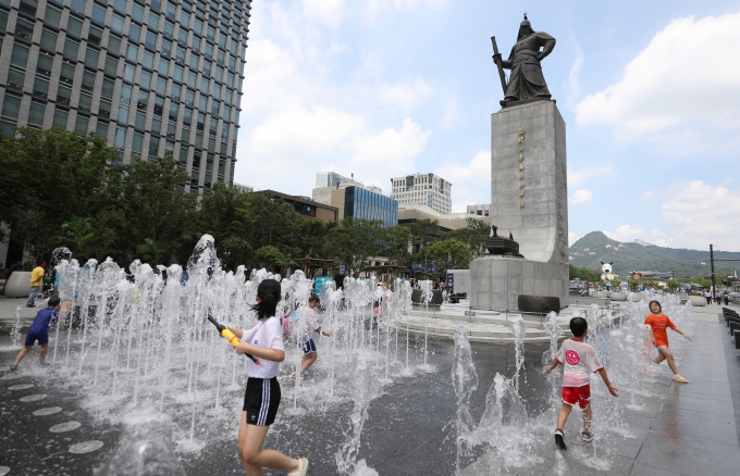| ¡ã¼¿ï ±¤È¹®±¤Àå ¹Ù´ÚºÐ¼ö¿¡¼ ¾î¸°À̵éÀÌ ¹°³îÀ̸¦ ÇÏ¸ç ´õÀ§¸¦ ½ÄÈ÷°í ÀÖ´Ù./»çÁø=´º½Ã½º |