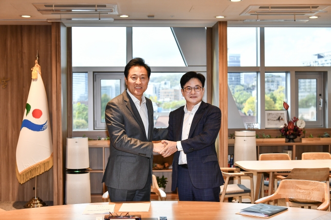 | ¡ãÁö³ÇØ 11¿ù 6ÀÏ ±èº´¼ö ±èÆ÷½ÃÀåÀÌ ¿À¼¼ÈÆ ¼¿ï½ÃÀå°ú °ø½Ä ¸¸³²À» °®°í °øµ¿¿¬±¸¹ÝÀ» ±¸¼ºÇϱâ·Î ÇÕÀÇÇß´Ù./»çÁøÁ¦°ø=±èÆ÷½Ãû |