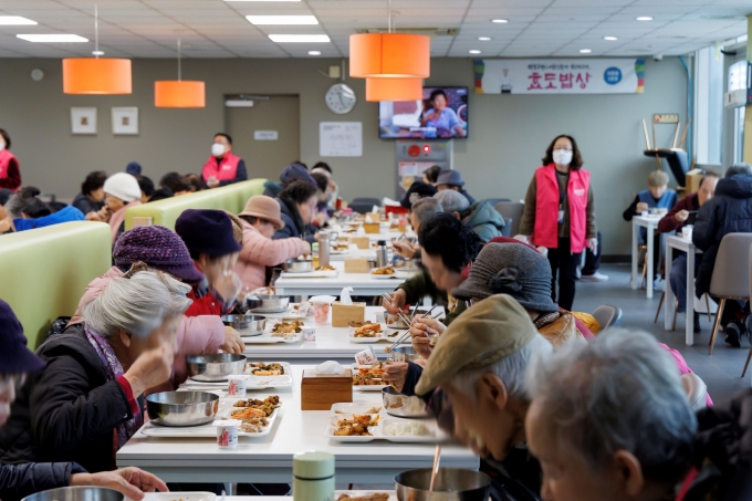 ´ëÇ¥ÀûÀÎ »ç¾÷ÀÌ ¡®ÁֹΠÂü¿© È¿µµ¹ä»ó¡¯ÀÌ´Ù. È¿µµ¹ä»óÀº ¸¶Æ÷±¸ÀÇ 75¼¼ ÀÌ»ó ¾î¸£½Å¿¡°Ô Á¡½ÉÀ» Á¦°øÇÏ´Â »ç¾÷À¸·Î, Àü±¹ ÃÖÃÊ·Î ÁøÇàµÆ´Ù. Ȧ¸ö¾î¸£½ÅÀÌ ¿ì¼±ÀÌ´Ù. Áö³ÇØ 4¿ù ±Þ½Ä±â°ü 7°³, ÀÌ¿ëÀÚ 100¿© ¸íÀ¸·Î ½ÃÀÛÇÑ ÀÌ »ç¾÷Àº ÇöÀç 38°³ ±Þ½Ä±â°ü 1200¿© ¸íÀÇ ¾î¸£½ÅÀÌ ÀÌ¿ëÇÏ´Â ¸¶Æ÷±¸ ´ëÇ¥ º¹Áö»ç¾÷À¸·Î ÀÚ¸® Àâ¾Ò´Ù.