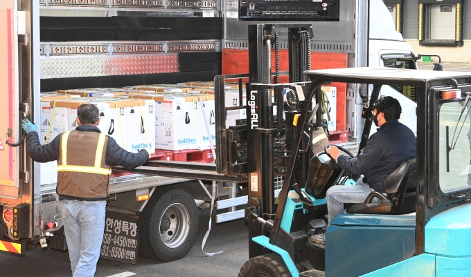 | ¡ã°æ±âµµ ÆòÅýà ¿À¼º¸é ¹°·ù¼¾ÅÍ¿¡¼ °ü°èÀÚµéÀÌ ¹°Ç°À» â°í·Î ¿Å±â°í ÀÖ´Ù./»çÁø=´º½Ã½º |