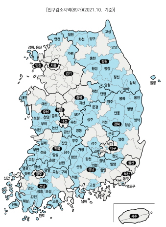±¤¿ªÁöÀÚü Áß Àα¸°¨¼ÒÁö¿ªÀÌ °¡Àå ¸¹Àº Áö¿ªÀº Àü³²(16°÷)ÀÌ´Ù. ÀÌ¾î ¡â°æºÏ(15°÷) ¡â°¿ø(12°³°÷) ¡â°æ³²(11°÷) ¡âÀüºÏ(10°÷) ¡âÃæ³²(9°÷)ÀÌ µÚ¸¦ À̾ú´Ù.