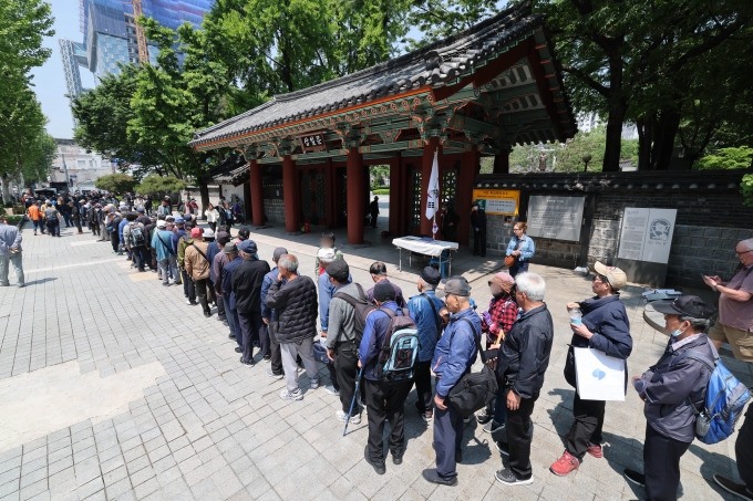 | ¡ã¼¿ï Á¾·Î±¸ ž°ñ°ø¿ø ¹«·á±Þ½Ä¼Ò ¾Õ¿¡ ¾î¸£½ÅµéÀÌ ÁÙÀ» ¼¼ ±â´Ù¸®°í ÀÖ´Ù./»çÁø=´º½º1 |