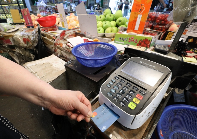 | ¡ã¼¿ï ¸¶Æ÷±¸ ¸Á¿ø½ÃÀåÀÇ ÇÑ Á¡Æ÷¿¡¼ Á¡ÁÖ°¡ ½Å¿ëÄ«µå·Î ¹°°Ç°ªÀ» °áÁ¦Çϰí ÀÖ´Ù./»çÁø=´º½Ã½º |