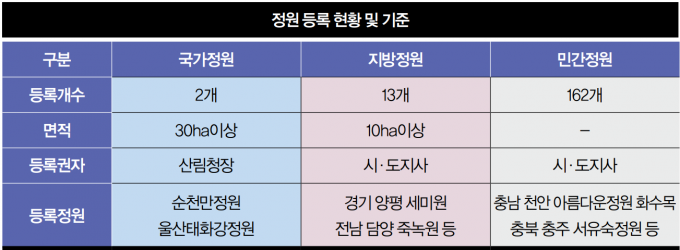 ±¹°¡Á¤¿ø¿¡ ÁöÁ¤µÇ±â À§Çؼ´Â ¡â30Çퟸ£(30¸¸§³) ÀÌ»óÀÇ ¸éÀû ¡â¿øÇü º¸ÀüÁö¡¤Á¶¼º³ìÁö È£¼ö¡¤ÇÏõ µî ³ìÁö¸éÀû 40% ÀÌ»ó ¡âÀü´ã Á¶Á÷ ±¸¼º°ú ÆíÀǽü³ ¼³Ä¡ µîÀ» ÃæÁ·ÇØ¾ß ÇÑ´Ù. ¾Æ¿ï·¯ 3³â°£ ¿î¿µ½ÇÀû°ú ¿î¿µ ÈÄ Ç°Áú°ú ¿î¿µ¡¤°ü¸®¿¡¼ 70Á¡ ÀÌ»óÀÇ Æò°¡µµ ¹Þ¾Æ¾ß ÇÑ´Ù.
