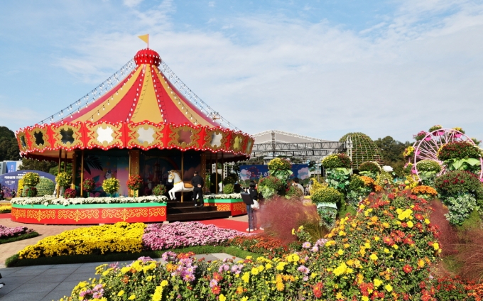 ´ëÇѹα¹ ±¹Çâ´ëÀü¿¡¼ °ü¶÷°´ÀÇ À̸ñÀ» »ç·ÎÀâ´Â °ÍÀº ´ëÇü ±¹È Á¶Çü¹°ÀÌ´Ù. ÃàÁ¦ÀåÀÇ Áß¾Ó±¤Àå¿¡ ³õÀÎ ¡®È¸Àü¸ñ¸¶¡¯(°¡·Î 12m, ³ôÀÌ 10m)¿Í ¡®´ë°ü¶÷Â÷¡¯(°¡·Î 4m, ³ôÀÌ 4m)´Â °Å´ëÇÑ ±Ô¸ð¸¸ÅÀ̳ª ¾ÐµµÀûÀÌ´Ù. ÀÌ ¹Û¿¡µµ ¡®¸¶¹ýÀÇ ¼º¡¯, ¡®Àü½ÃÄÅ¡¯, ¡®»Ç·Î·Î¿Í Ä£±¸µé¡¯, ¡®°ø·æ¡¤µ¿¹° ij¸¯ÅÍÁ¸¡¯ µî ´ë¡¤Áß¡¤¼ÒÇü ±¹È Á¶Çü¹° 95Á¡ÀÌ ¾î¿ì·¯Á® µ¿È ¼Ó ³îÀ̵¿»êÀ» ¿¬»óÄÉ ÇÒ °ÍÀ¸·Î º¸ÀδÙ. ÃàÁ¦ °ü°èÀÚ´Â ¡°ÇüÇü»ö»öÀÇ ±¹È°¡ ¾î¿ì·¯Áø Á¶Çü¹°Àº °ü¶÷°´µéÀÇ ¡®ÀÎÁõ¼¦¡¯ ÄÚ½º·Îµµ ¼Õ»ö¾ø´Ù¡±°í ¼³¸íÇß´Ù.