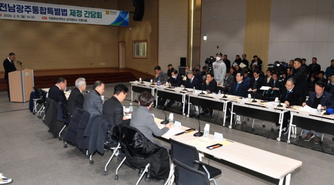 | ¡ã°±âÁ¤ ±¤ÁÖ½ÃÀå°ú ±è¿µ·Ï Àü³²µµÁö»ç¿Í Áö¿ª ±¹È¸ÀÇ¿øµéÀÌ Áö³ 2¿ù 8ÀÏ ¿ÀÈÄ Àü³² ¹«¾È±º ±¹¸³¸ñÆ÷´ë ³²¾ÇÄ·ÆÛ½º ÄÁº¥¼ÇȦ¿¡¼ Àü³²±¤ÁÖÅëÇÕÆ¯º°¹ý Á¦Á¤ °£´ãȸ Á÷ÈÄ ¡®°ú°¨ÇÑ ÀçÁ¤¡¤±ÇÇÑ Æ¯·Ê ÁøÂ¥ ÅëÇÕÆ¯º°¹ý¡¯ Á¦Á¤ Ã˱¸ °áÀǹ®À» ¹ßÇ¥Çϰí ÀÖ´Ù./»çÁø=´º½Ã½º |